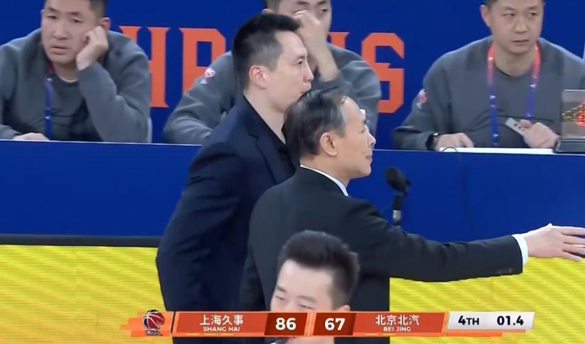 卢伟紧急暂停,但没有换上大白边,还是让洛夫顿去内线乱抡解决问题,上海反而打的有点单一,杰曼单挑张镇麟打进高难度上篮,陈盈骏助攻大芒果轻松得分,北京两回合再得4分,将分差缩小来到1分。