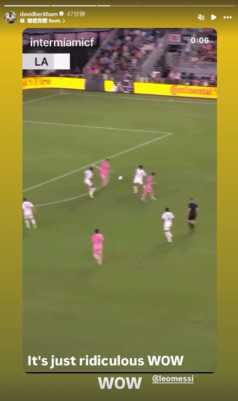 贝克汉姆转发梅西助攻瞬间,同时艾特梅西写道:哇,哇,这太绝了
